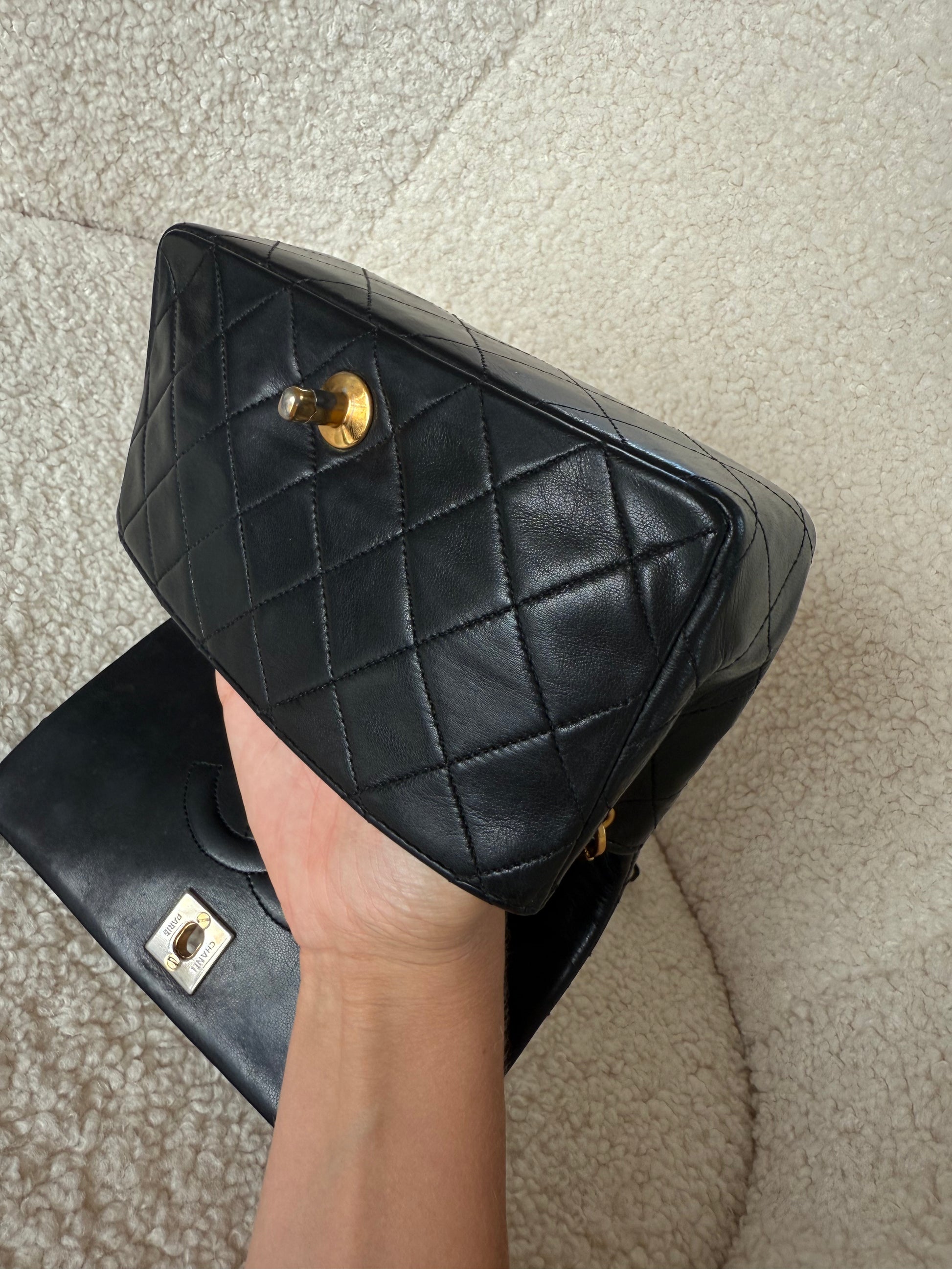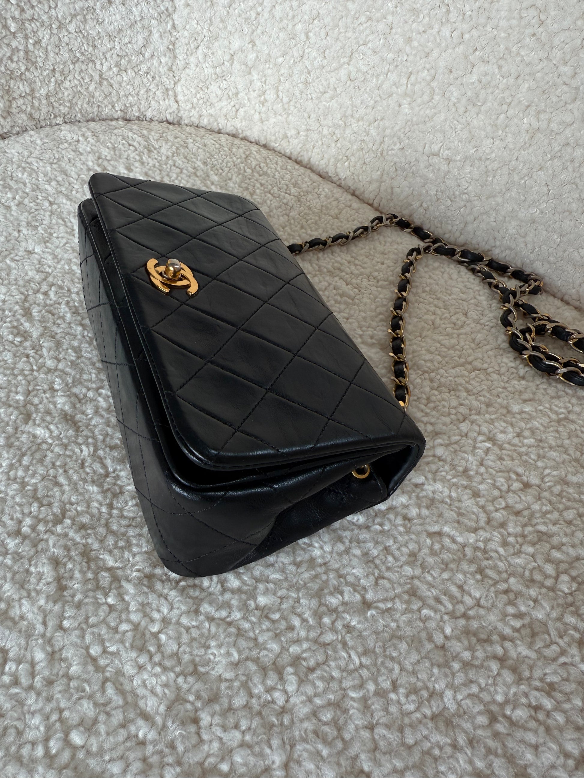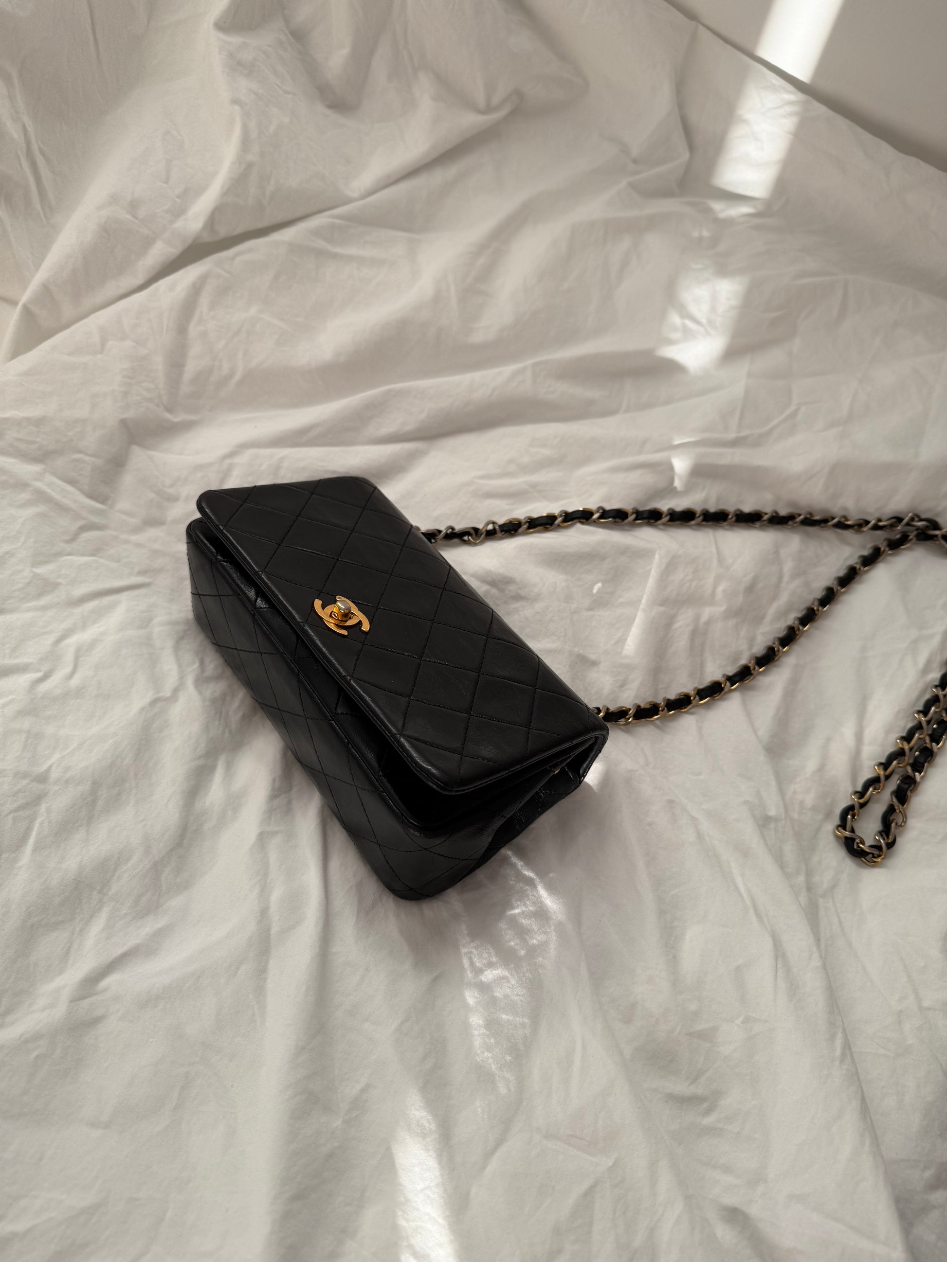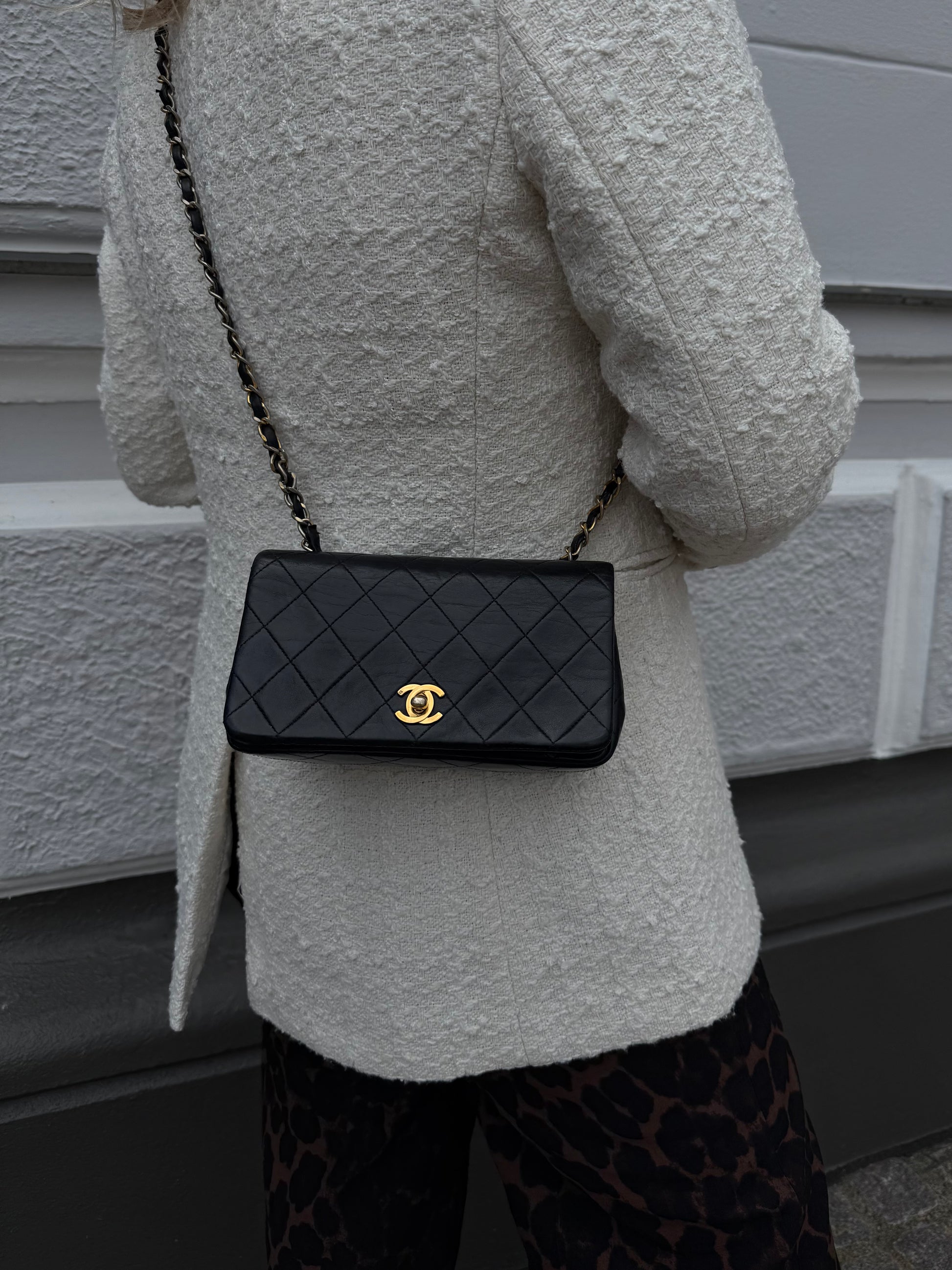 Klassisk Chanel Full Flap med 24 karat forgyldt hardware. Intakt serienummer som daterer tasken til 1991. Super smuk stand både indeni og udenpå. Lavet i slidstærkt kalveskind. Ingen fejl i syninger. Låsen fungerer optimalt. God længde på kæden så den nemt kan bruges cross body.