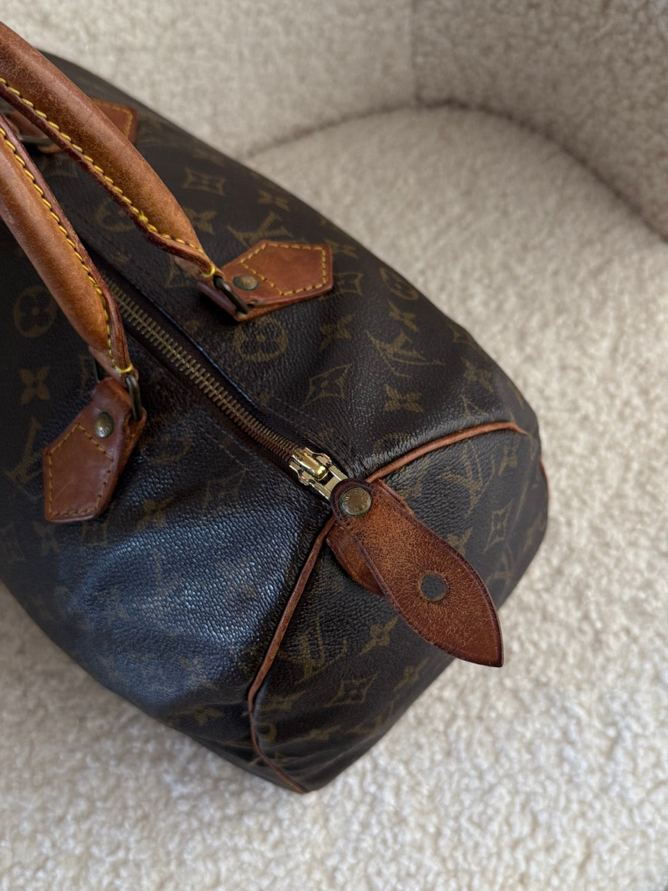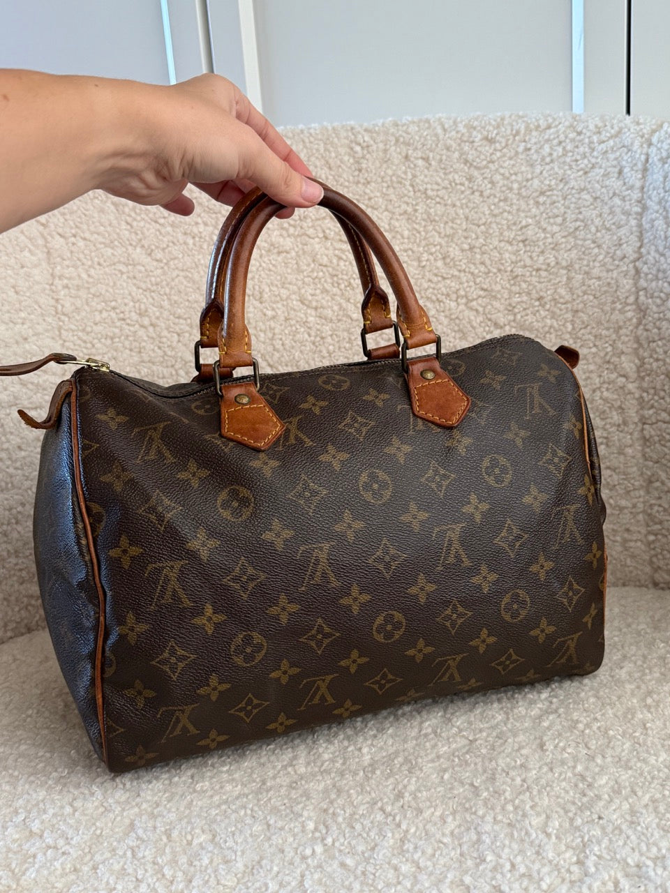 Vintage klassiker fra Louis Vuitton. Både trendy og tidløs i slidstærkt monogram. Super rummelig med en ekstra lomme indvendigt. Nem at style med små sikletørklæder og accessories for et personligt look.